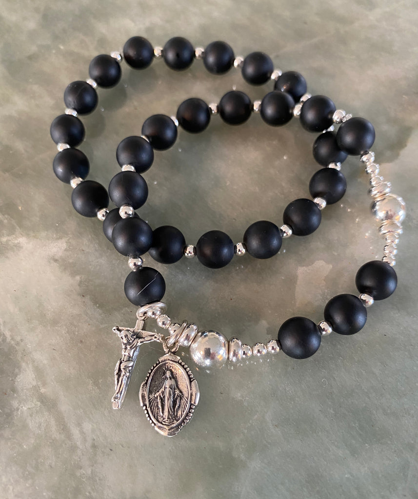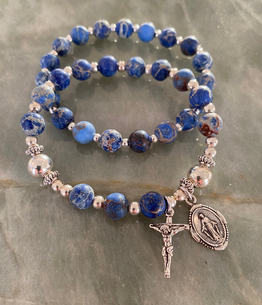 This bracelet is designed to accompany our Faith & Family Rosary bracelet, for those who desire a layered look.  This bracelet is made of the identical stones to its parter rosary bracelet.  The photo of the two bracelets together is for example purposes.  Don't see your color?  Just ask... We probably have it!
