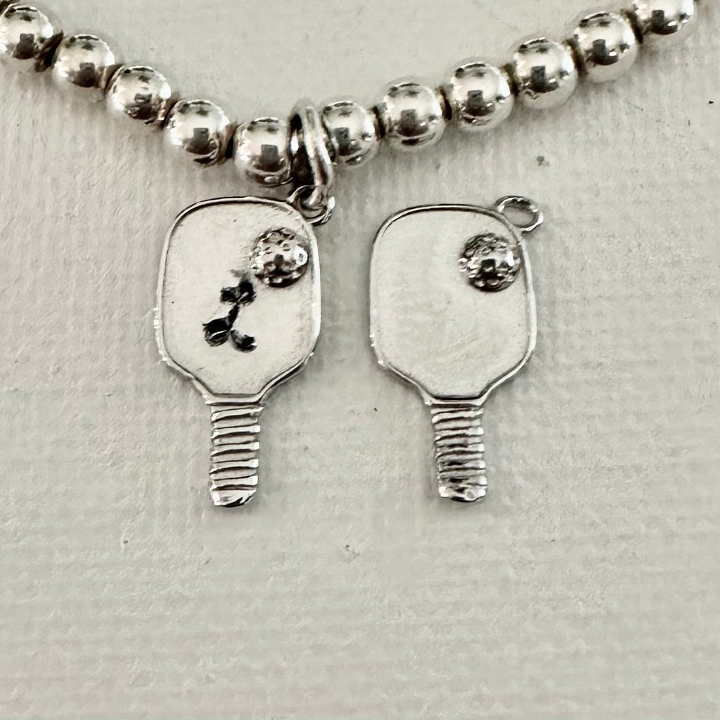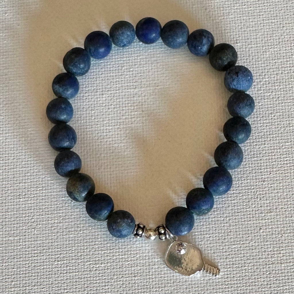 A Pickleball bracelet you can customize. Choose your color, size and optional initial on your sterling paddle at no charge. Semi-precious gemstones and .925 sterling silver components are strung on durable stretch polymer cord. Please indicate your initial choice in the notes on your order. Don't see your color? Just send a message and we'll find it.