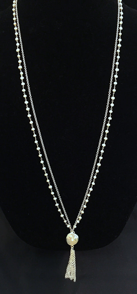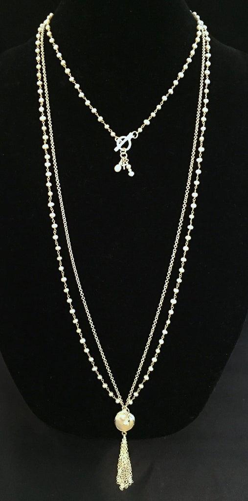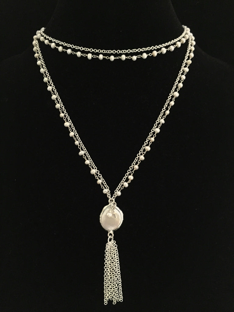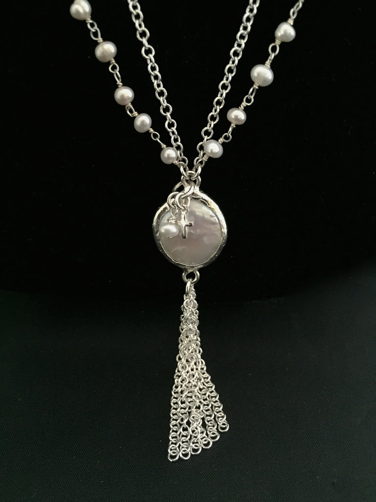 "Suzy" Pearl Lagoon Tassel Necklace